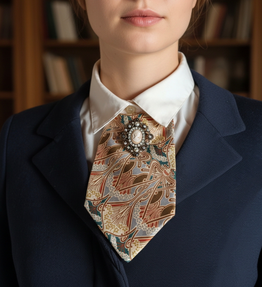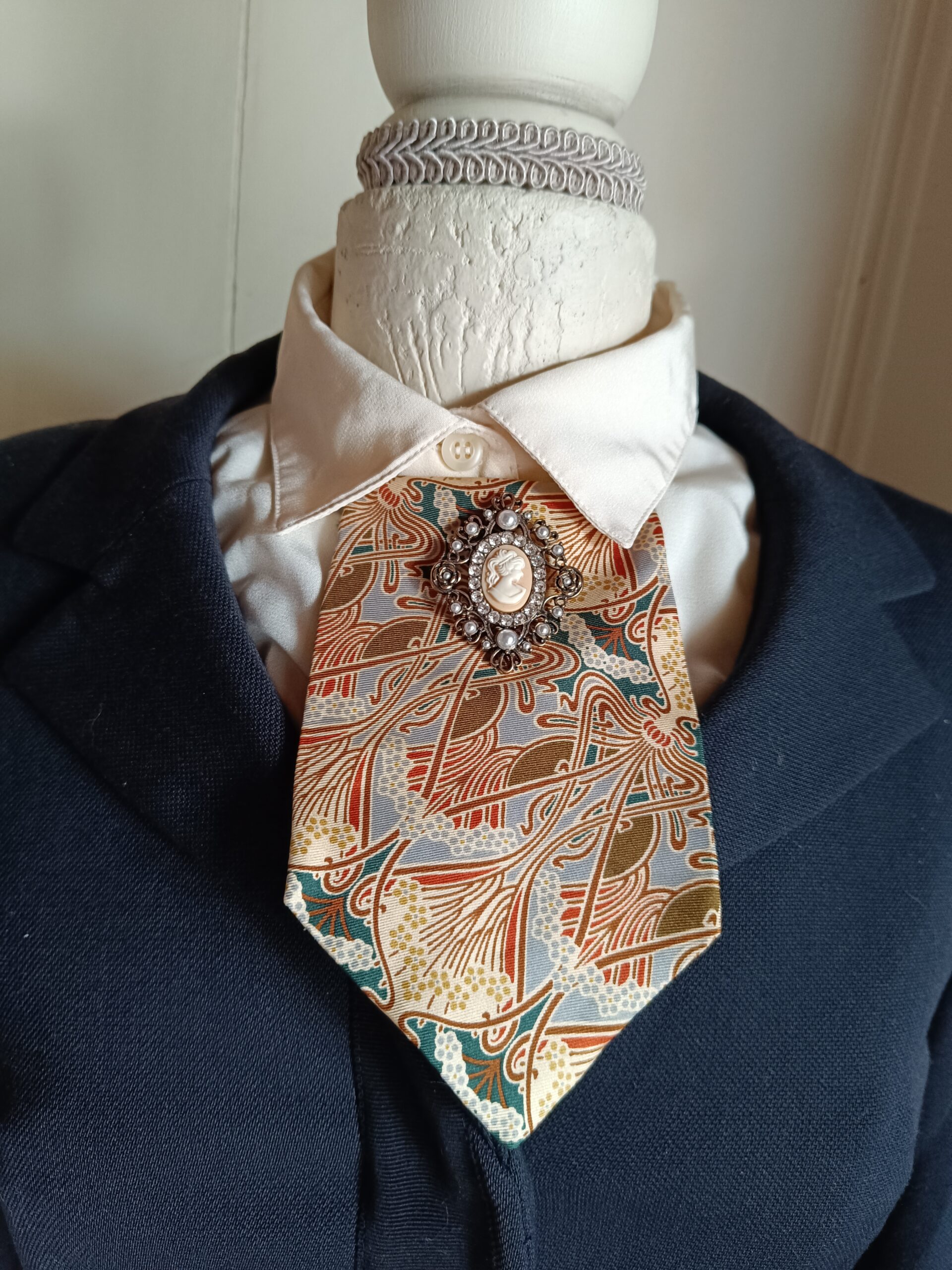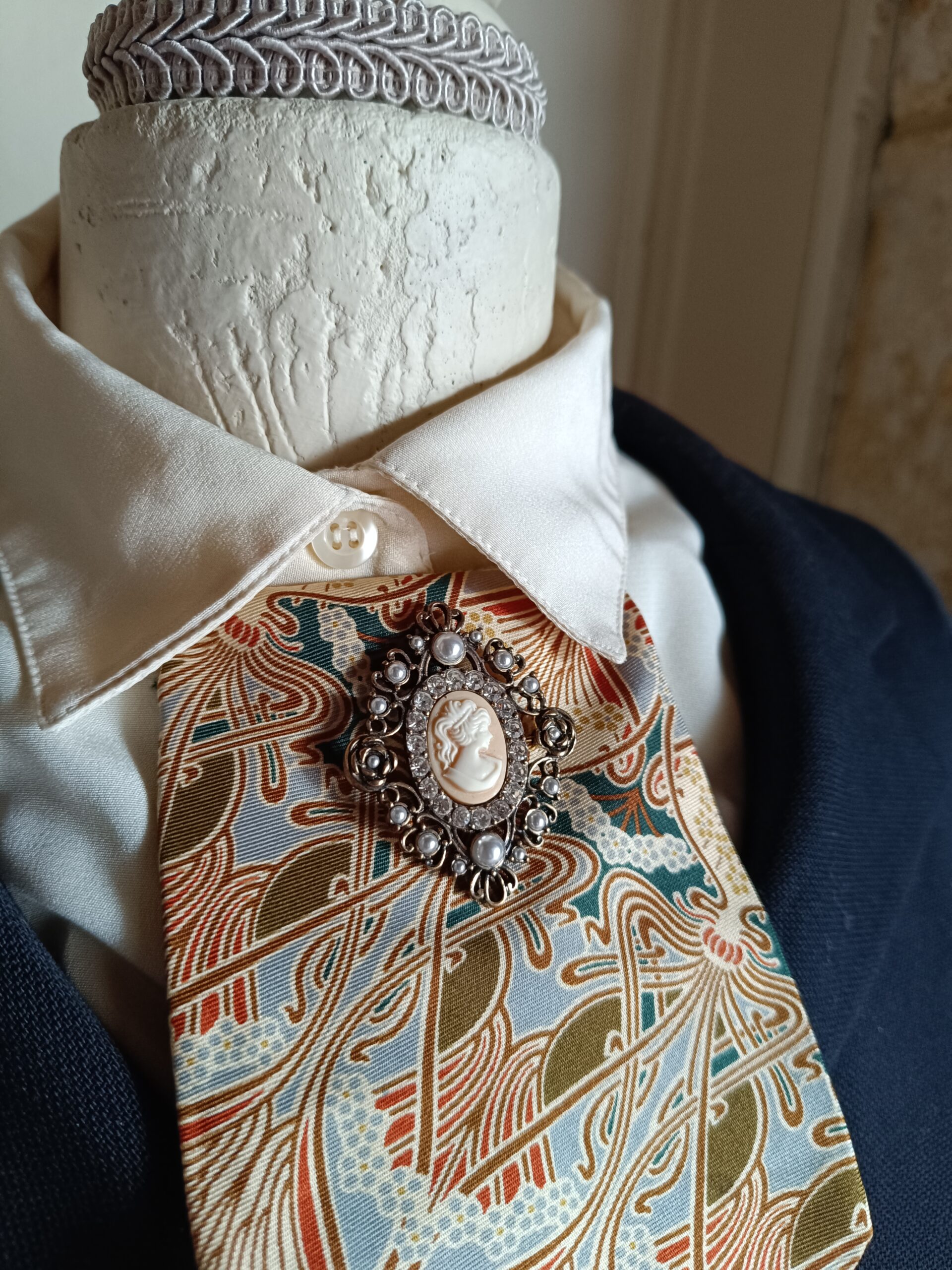 Cravate en soie transformée en bijou de cou, réalisée à partir de tissu vintage  revalorisée.