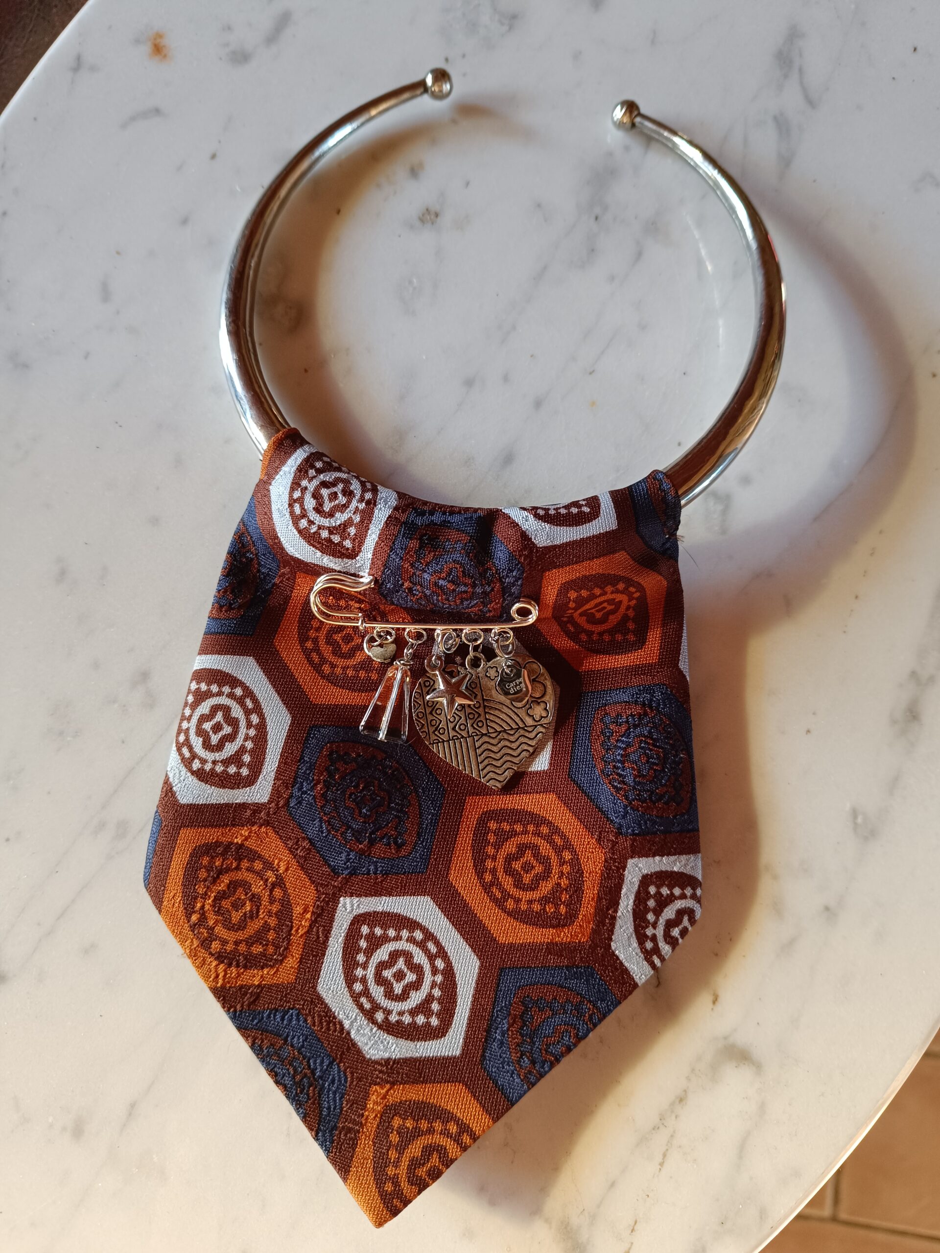 Cette cravate upcyclée a été entièrement réalisée dans mon atelier en Dordogne, à partir d’une cravate ancienne soigneusement sélectionnée.
