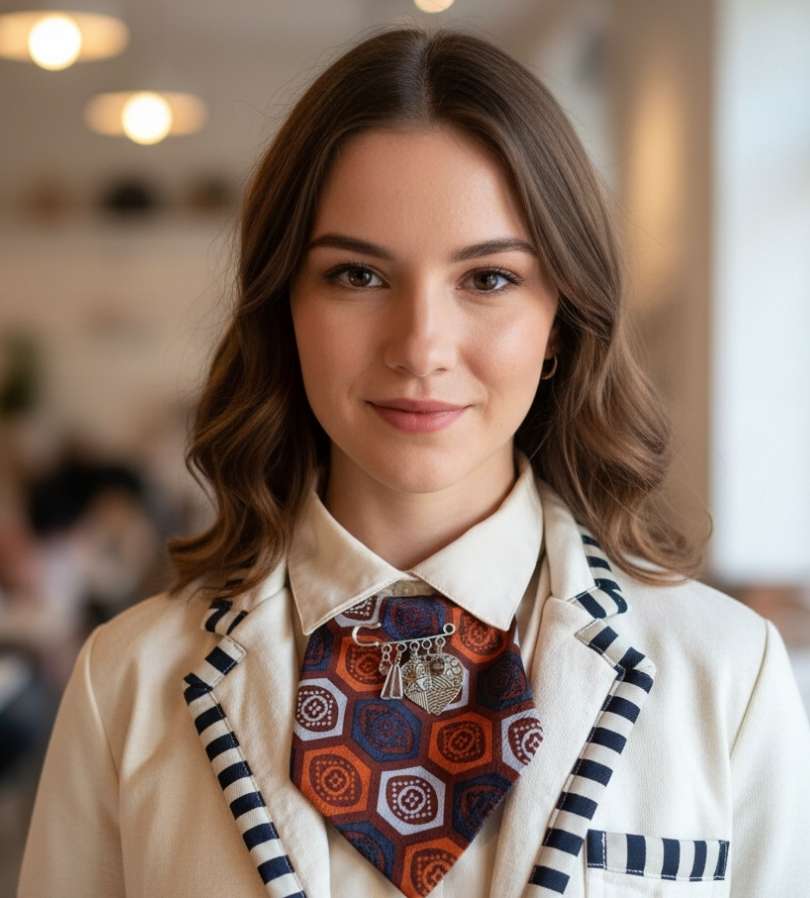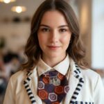 Pensée comme un bijou textile, elle se porte directement au cou et apporte une touche élégante et contemporaine à une tenue simple comme à une silhouette plus habillée.