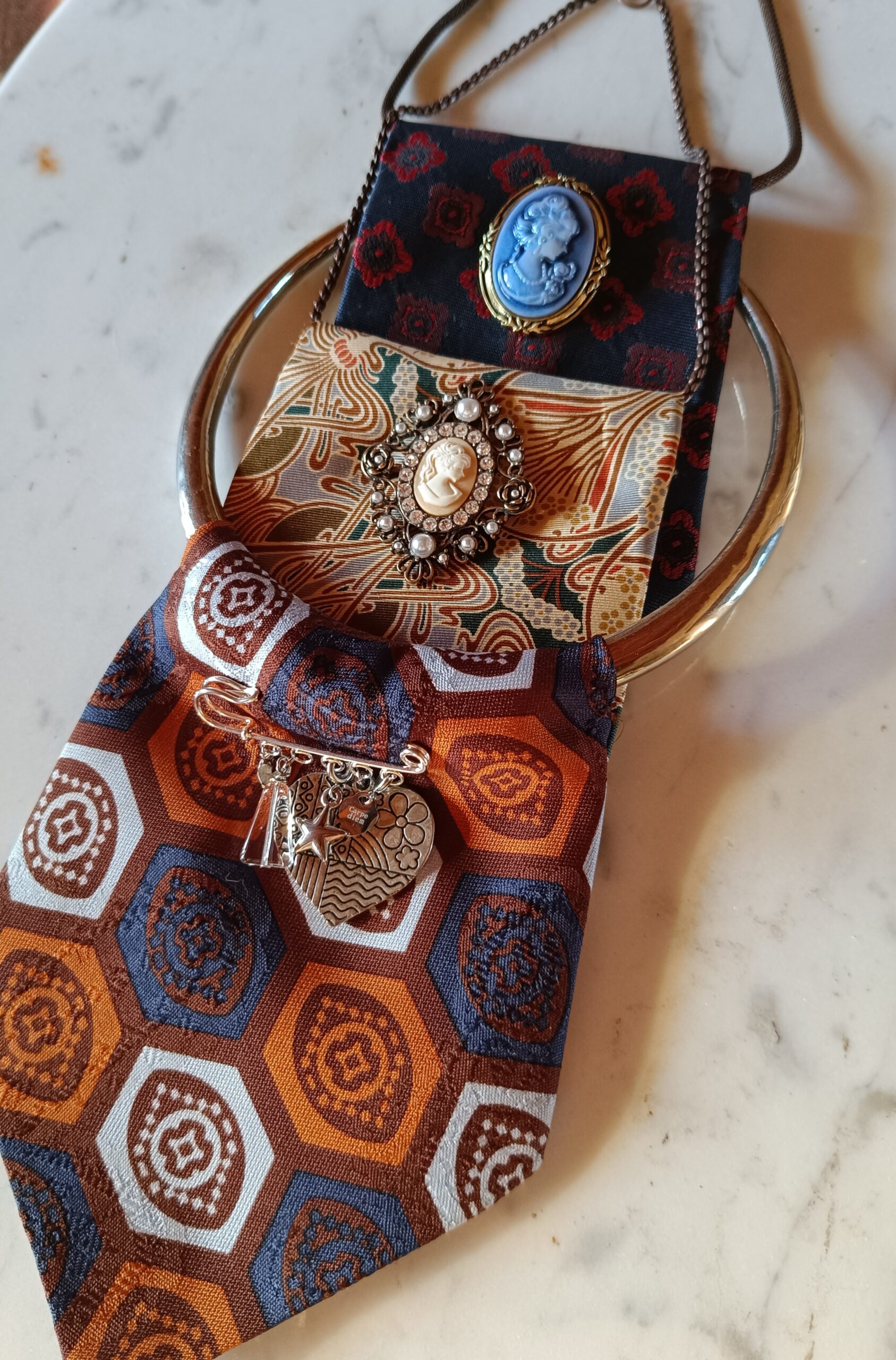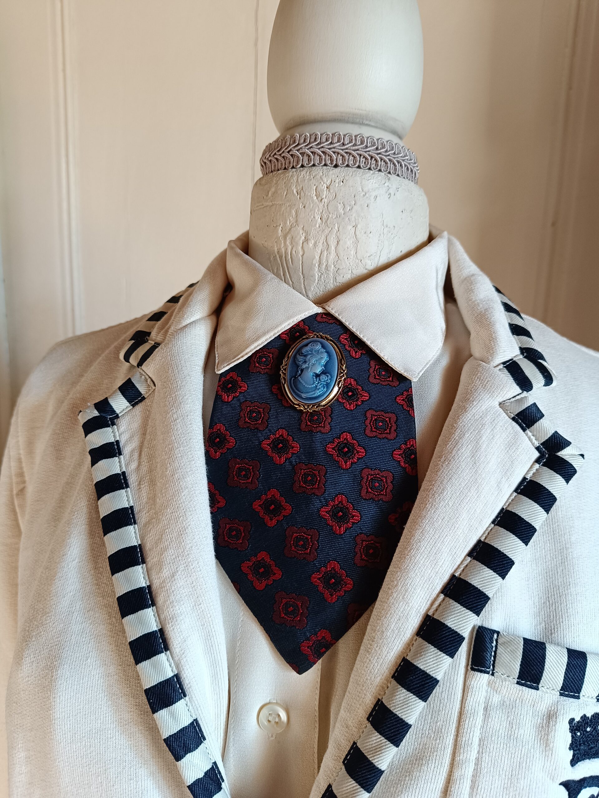 Cette cravate upcyclée a été entièrement réalisée dans mon atelier en Dordogne, à partir d’une cravate ancienne soigneusement sélectionnée.