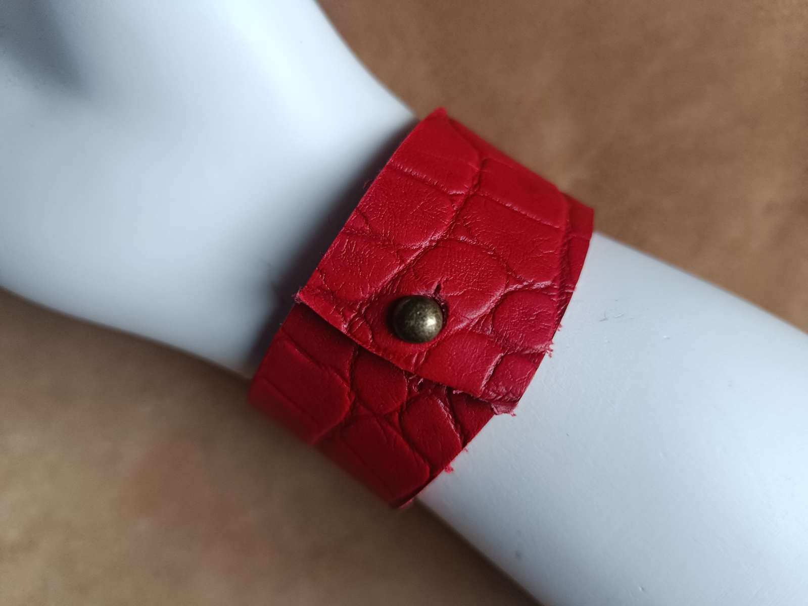 Manchette cuir rouge – Boucle vintage citron T M standard